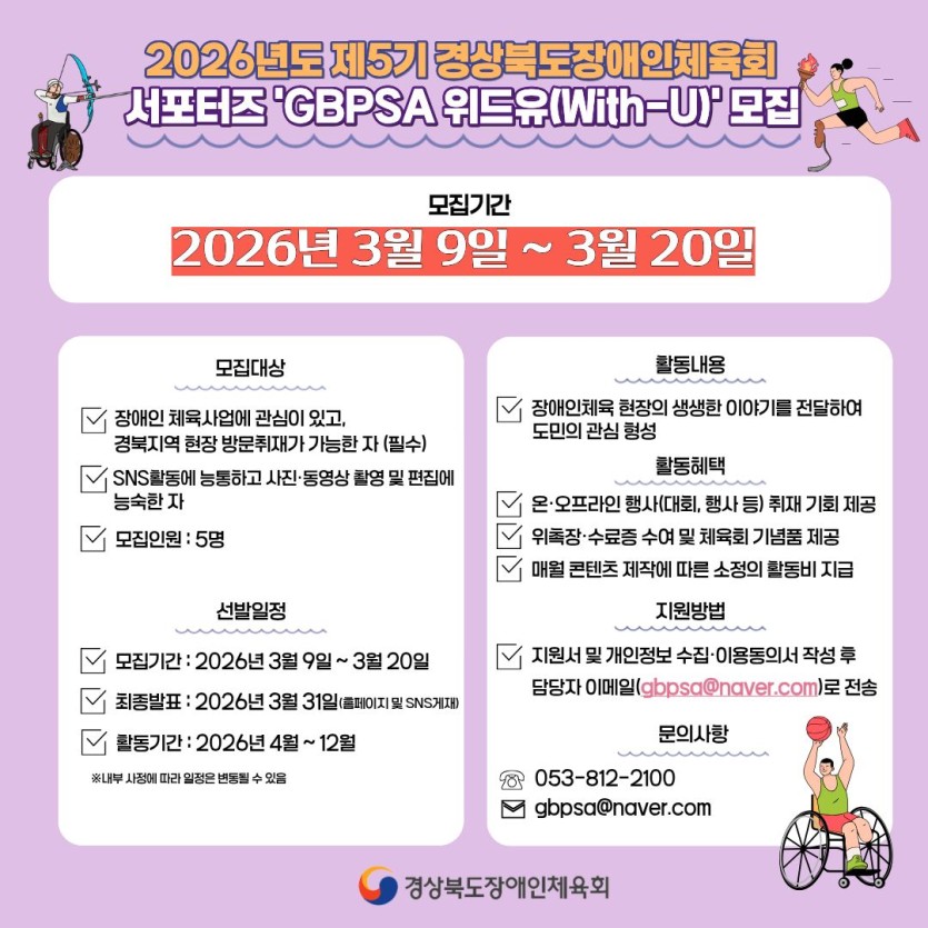 2026년도 제5기 경상북도장애인체육회 서포터즈 'GBPSA 위드유(With-U)'모집